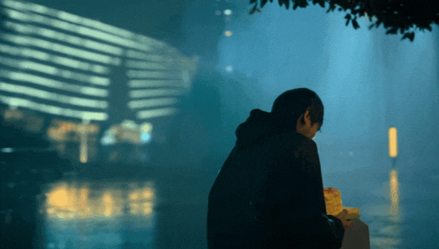比如拿着生日蛋糕站在瓢泼大雨中那场戏,从眼眶泛红到崩溃大笑,再到眼中怅然若失,人物的悲伤也漫进观众心里。