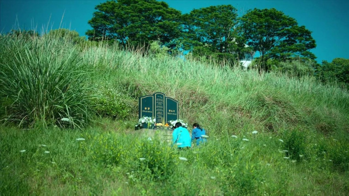江水边的青青草地上,吴飞飞和高风来到生母曲梦和红姐的墓碑前祭奠,两个当年的好姐妹被葬在一起。